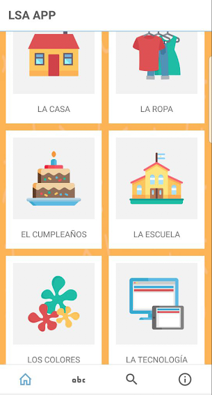 LSA en Familia es una aplicación que favorece la comunicación a través de señas básicas de LSA en las familias con niños sordos. Bajo la supervisión de FUNDASOR fue realizada con el objeto de que las personas con desconocimiento puedan acercarse a la LSA con iconos simples y accesibles en comunión con los videos realizados. Tanto las imágenes y los videos se pueden descargar en forma online cómo interpretar en LSA palabras relacionadas con la vida cotidiana, agrupadas en diferentes temáticas: la casa, la escuela, la ropa, la comida, pero también los sentimientos, el cuerpo humano, la salud y educación sexual, entre otros. LSA en Familia constituye además el primer material de divulgación específica de este tipo que incluye videos realizados por Personas Sordas en nuestro país.